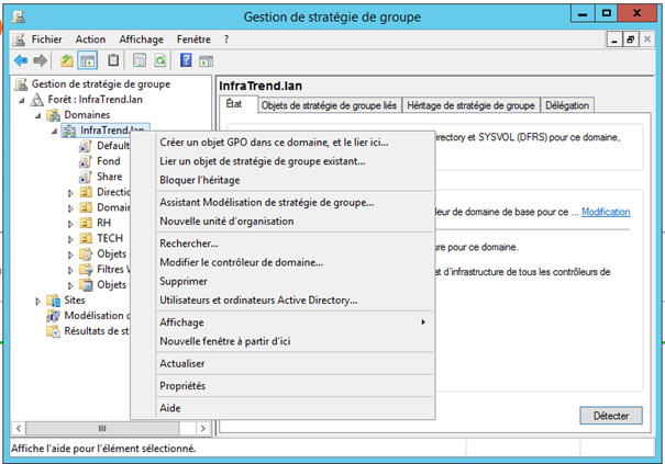 Étape 1 : Rendez-vous sur votre serveur contrôleur de domaine, puis dans « Gestion de stratégie de groupe« , faites un clic droit et sélectionnez « Créer un objet GPO dans ce domaine…«