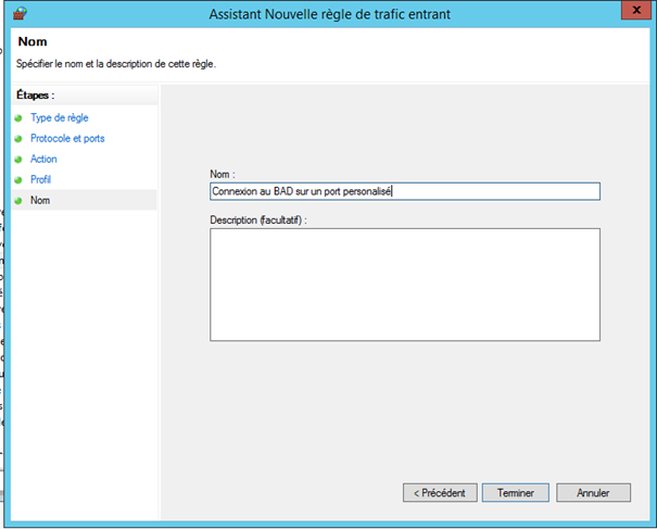 Étape 8 : Nous allons donc créer une règle pour les ports