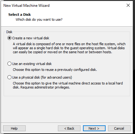 Pour la carte réseau, nous allons pour le moment choisir NAT