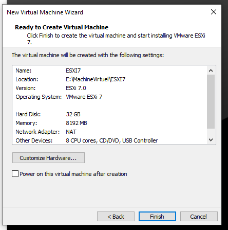 Vmware ESXi 7.0 sur Vmware Workstation Pro